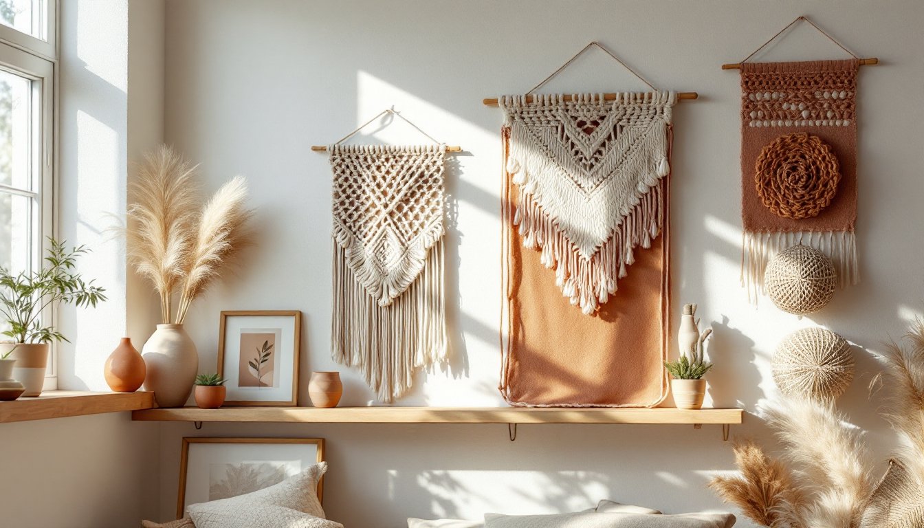 Boho wall decor succeeds because it prioritizes texture and warmth over rigid rules. Natural fibers, cotton, jute, wool, age beautifully and hide minor imperfections that would stand out on pristine white walls. The style also embraces handmade charm: a slightly uneven macramé knot or painted watercolor bleed becomes character, not a flaw.