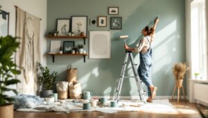 Before painting, prep the wall: clean off dust, fill small holes with spackle, and sand smooth once dry. Tape trim and baseboards with painter’s tape 1/4 inch from the edge to ensure crisp lines. Use a primer if covering a dark color with light or switching from oil-based to latex: this prevents bleed-through and improves coverage.